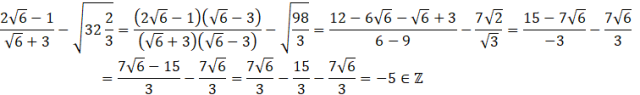 Dowód przeprowadź, usuwając niewymierność z mianownika z wykorzystaniem wzoru skróconego mnożenia: a2 – b2 = (a – b)(a + b), a następnie redukując wyrazy podobne.