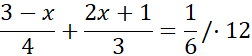 Wykonaj operacje mnożenia i dzielenia na podanych nawiasach. Pamiętaj, że zarówno dzielenie, jak i mnożenie nawiasu przez liczbę, to dzielenie lub mnożenie każdego elementu tego nawiasu przez tę liczbę. Następnie zredukuj wyrazy podobne i przenieś niewiadome na jedną stronę równania. Oblicz wartość niewiadomej.