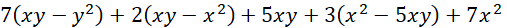 Najpierw przemnóż nawiasy. Następnie, jeżeli w działaniu występują wyrazy podobne zredukuj je ze sobą, aby przedstawić sumę algebraiczną w jej najprostszej postaci.