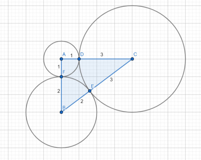 Udowodnij, że trójkąt ABC, którego środki są środkami okręgów stycznych zewnętrznie o promieniach 1, 2 i 3 jest prostokątny.
