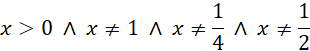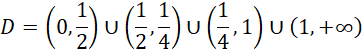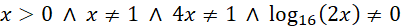 Wyznacz dziedzinę wynikającą z faktu, że podstawa logarytmu musi być większa od 0 i różna od 1, liczba logarytmowana musi być większa od 0, a mianownik ułamka różny od 0.