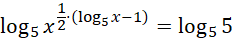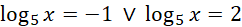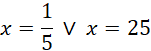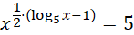 Na podstawie dziedziny równania można stwierdzić, że wyrażenie po lewej stronie jest dodatnie. Fakt ten pozwala wstawić wyrazy po obu stronach równania do liczby logarytmowanej logarytmu o podstawie 5: