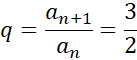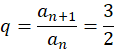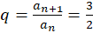 Wyliczasz wartość q, która jest odwrotnością ilorazu kolejnych wyrazów: