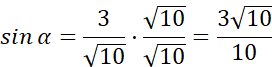 Sinusem kąta ostrego α nazywamy stosunek długości przyprostokątnej, która leży naprzeciwko tego kąta do długości przeciwprostokątnej. Oznaczamy jako sinα.