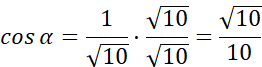 Cosinusem kąta ostrego α nazywamy stosunek długości przyprostokątnej, która przylega do tego kąta do długości przeciwprostokątnej. Oznaczamy jako cosα.