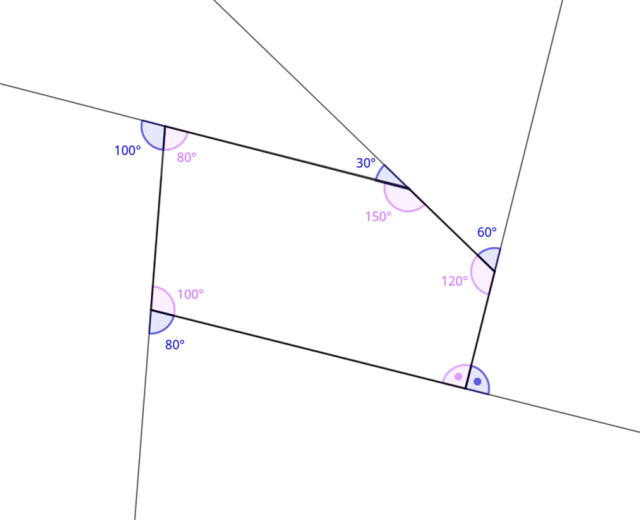 Wyznacz i zaznacz kąty zewnętrzne na rysunku.