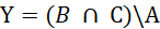 Zaznaczony graficznie zbiór Y jest różnicą części wspólnej ze zbiorów B i C oraz zbioru A.