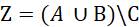 Zaznaczony graficznie zbiór Z jest różnicą sumy zbiorów A i B oraz zbioru C.