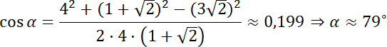 W tym zadaniu użyj twierdzenia cosinusów oraz tablic trygonometrycznych.