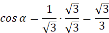 Cosinusem kąta ostrego α nazywamy stosunek długości przyprostokątnej, która przylega do tego kąta do długości przeciwprostokątnej. Oznaczamy jako cosα.