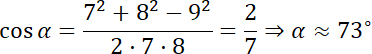 W tym zadaniu użyj twierdzenia cosinusów oraz tablic trygonometrycznych.