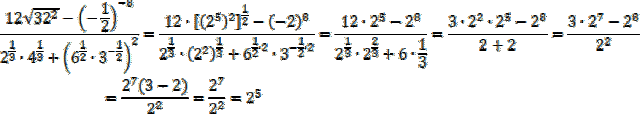 Najpierw zamień wszystkie czynniki w mianowniku i liczniku na liczby w postaci potęgi liczby 2, następnie wykonaj obliczenia. Aby tego dokonać, zastosuj prawa działań na potęgach: