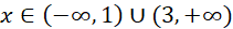 Ramiona paraboli skierowane są do góry, a więc x znajduje się w przedziale: