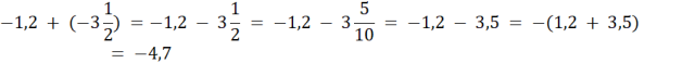 –1,6 + 2,3 = 2,3 – 1,6 = 0,7