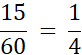1 godzina to 60 minut, więc żeby sprawdzić jaką częścią godziny jest 15 min, dzielimy 15 przez 60.