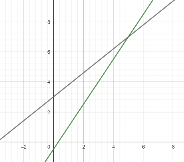 Interpretacją geometryczną układu są dwie proste, a rozwiązaniem punkt ich przecięcia.