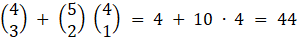 Aby suma liczb była parzysta, można wybrać 3 spośród 4 parzystych liczb lub 2 spośród 5 nieparzystych i 1 z 4 parzystych. Zapisz to jako