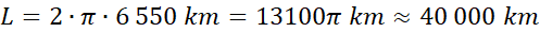 W pierwszej kolejności oblicz odległość orbity od środka planety dodając do połowy średnicy Ziemi wysokość orbity ponad nią.