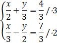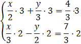 Pomnożymy obustronnie oby dwa równania przez liczbę: pierwsze przez 3, a drugie przez 2, otrzymamy przeciwne współczynniki przy zmiennej y: