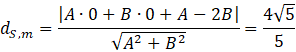 Wyznacz równanie ogólne prostej, która przechodzi przez punkt P(-1, 2), a jej odległość od punktu (0,0) wynosi