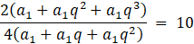 Najpierw zapisz dane w formie równań określających wartości sum ilorazów wyrazów pierwszych z q. Następnie zapisz równanie z dzieleniem pola powierzchni przez sumę krawędzi i wylicz z powstałej równości q. Na koniec do wzoru na objętość podstaw uzyskane wartości i oblicz.