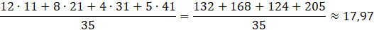Określ, czy jest możliwe, że średnia arytmetyczna wyników przedstawionych w tabeli wynosi 18.