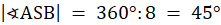 W tym zadaniu policz miarę kąta ASB, wiedząc, że okrąg, w który wpisany jest ośmiokątem i ma promień o długości 5.