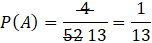Odp.: Prawdopodobieństwo, że gdy losowo będzie się wyciągało po jednej karcie, z talii 52 kart, na końcu pozostanie as, wynosi