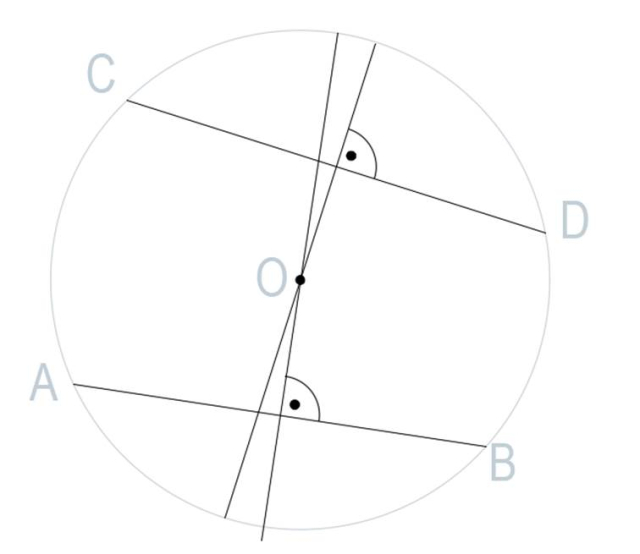 Punkt przecięcia się symetralnych dwóch cięciw jest środkiem okręgu.