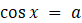 Parametr a możesz interpretować jako prostą równoległą do osi OX, a ilość rozwiązań równania jako ilość punktów wspólnych wykresu funkcji i wspomnianej prostej. Możesz zauważyć, że tylko dla a = -1 prosta y = -1 ma dwa punkty wspólne z wykresem funkcji cosinus. Zatem dla a = -1 równanie