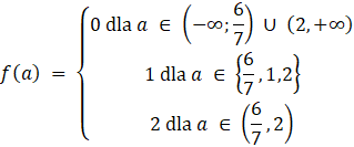 W tym zadaniu musisz wyznaczyć ilość rozwiązań równania w zależności od parametru a, naszkicować wykres funkcji f i na podstawie wykresu podać wartość wskazanej granicy jednostronnej.