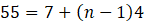 W tym zadaniu musisz obliczyć, ile wyrazów ma ciąg arytmetyczny 7, 11, 15, …, 55.