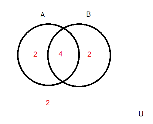 Zbiory A i B są podzbiorami przestrzeni U oraz liczby elementów zbiorów prezentują się następująco: