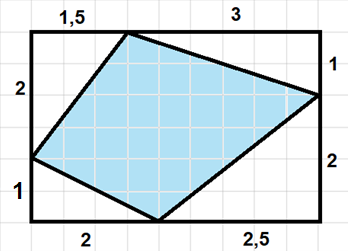 Narysuj prostokąt, który będzie zawierał niebieską figurę tak jak na rysunku. Oblicz pole prostokąta, a następnie pola białych trójkątów. Pole niebieskiej figury będzie różnicą pola prostokąta i pól trójkątów.