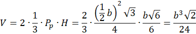 W tym zadaniu musisz obliczyć objętość bryły, której każdy z czworościanów ma krawędź o długości b.