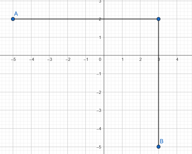 Aby dojść od A do B idź 6 w prawo i 7 w dół, czyli razem pokonujemy odległość 13.