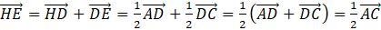 Co oznacza, że HE jest równoległy do AC i AC jest dwa razy większy od HE