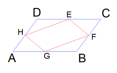 Czyli figura wewnątrz dowolnego czworokąta ma dwie pary boków równoległych, a naprzeciwległe boki są równe, czyli jest równoległobokiem.