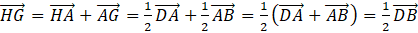 Co oznacza, że odcinki HG i DB są równoległe oraz DB jest dwa razy większy od HG