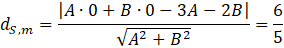 Najpierw oblicz punkt przecięcia prostych. Następnie przekształć wzór ogólny prostej i podstaw go do równania na odległość punktu od prostej. Uzyskane równanie rozwiąż stosując deltę. Na koniec zapisujemy wzór uzyskanej funkcji.