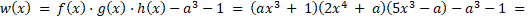 Wyznaczamy wielomian w wymnażając elementy nawiasów oraz grupując wyrazy podobne. Następnie podstawiamy w równaniu za zmienną x wartość –1 oraz wyznaczamy wartość parametru a stosując wyróżnik trójmianu.