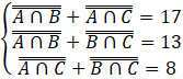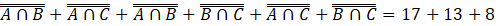 To zadanie musisz zacząć od założenia, że każdy uczeń interesuje się dwoma rzeczami (dzięki temu otrzymasz najmniejszy możliwy wynik uczniów, którzy dostali 3 lub 4). Suma ilości elementów iloczynów zbioru osób interesujących się sportem z innymi osobami musi dać w wyniku ilość wszystkich osób interesujących się sportem (17). Analogicznie dla osób interesujących się informatyką lub muzyką. W wyniku tego otrzymasz układ trzech równań. Musisz dodać stronami wszystkie równania. Po jednej stronie musisz mieć sumę ilości elementów sześciu iloczynów, a po prawej suma osób, które interesują się daną dziedziną. Musisz podzielić równanie przez 2. Liczba po prawej stronie równania będziesz najmniejszą możliwą liczbą osób, które otrzymały ocenę dobrą lub dostateczną. Musisz odjąć od liczby wszystkich uczniów, liczbę uczniów, którzy dostali 1 lub 2 i 3 lub 4.