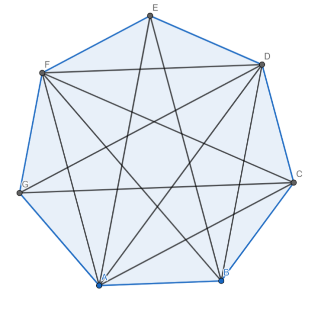 Przez punkt S nie przechodzi żadna przekątna siedmiokąta foremnego.