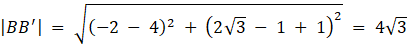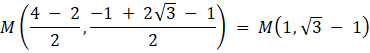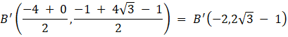 Punkt M – środek symetrii – jest też środkiem odcinka BB’. Ma więc współrzędne:
