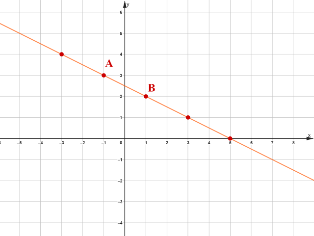 W tym zadaniu musisz zaznaczyć punkty A = ( -1, 3 ), B = ( 1, 2 ) na układzie współrzędnych, następnie podaj współrzędne trzech punktów kratowych leżących na prostej AB.