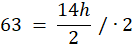 Czerwoną linią oznaczona jest wysokość trójkąta (h). Wzór na pole trójkąta to: