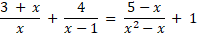 Sprowadź wszystkie ułamki do wspólnego mianownika, wyznacz dziedzinę i pomnóż przez mianownik. Doprowadź do najprostszej postaci.