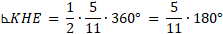 Zacznij od obliczenia miary kąta środkowego KOR. Następnie oblicz miarę kąta wpisanego, opartego na tym samym łuku co kąt KOE. Suma miar kątów promyków gwiazdki będzie składała się z 11 miar takich kątów wpisanych.