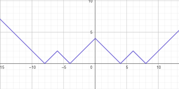W podanym przedziale funkcja f przyjmuje wartość największą dla argumentu x = 0, a najmniejszą – dla x = -4 i x = 4.