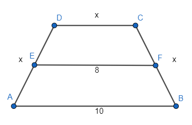 Dłuższa podstawa AB w trapezie ABCD ma długość 10. Odcinek, który łączy środki ramion tego trapezu, jest długości 8. Musisz obliczyć obwód trapezu, jeżeli podano, że |BC| = |AD| = |CD|.